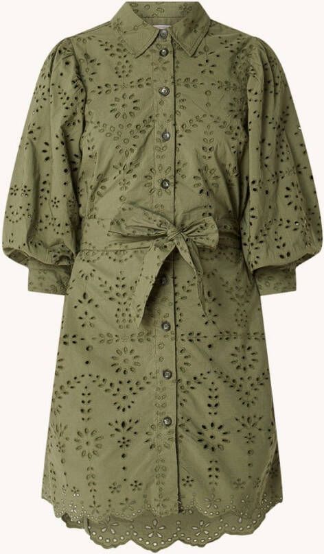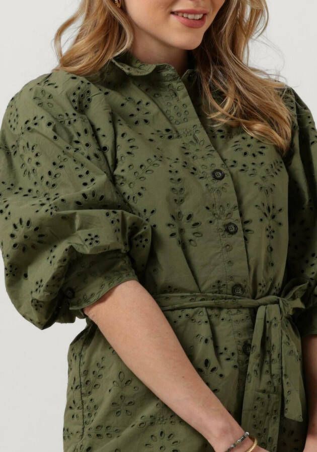 Olijf Scotch & Soda Mini jurk Puff Sleeve Cotton Midi Dress.
