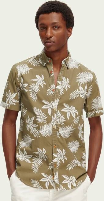 Scotch & Soda Printed washed short sleeve poplin khaki leaf