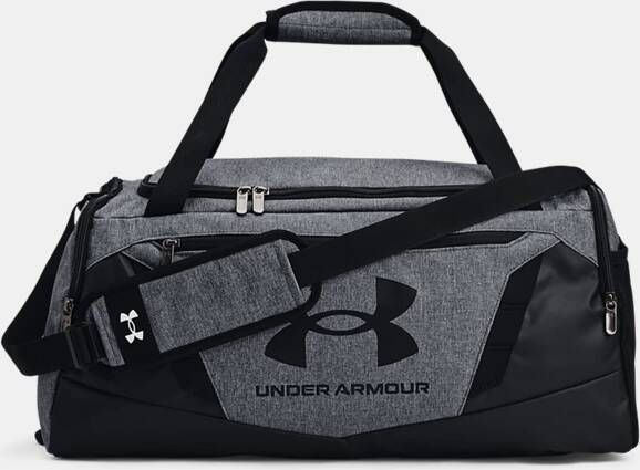 Specificaties: * Vakken: twee grote vakken, een klein voorvak en een speciaal vak voor schoenen of natte kleding, allen met ritssluiting; steekvakken voor twee bidons * Waterbestendigheid: de tas is gemaakt met de UA Storm technologie en daardoor waterbestendig * Schouderbanden: twee draagriemen en een verstelbare schouderband * Afmetingen: 55 x 27 x 26cm (Inhoud: 40 liter) * Kleur: grijs zwart * Materiaal: 100% polyester * Extra bijzonderheden: sterke bodem en zijkanten, voorzien van PU-coating en foamvoering voor extra stevigheid.